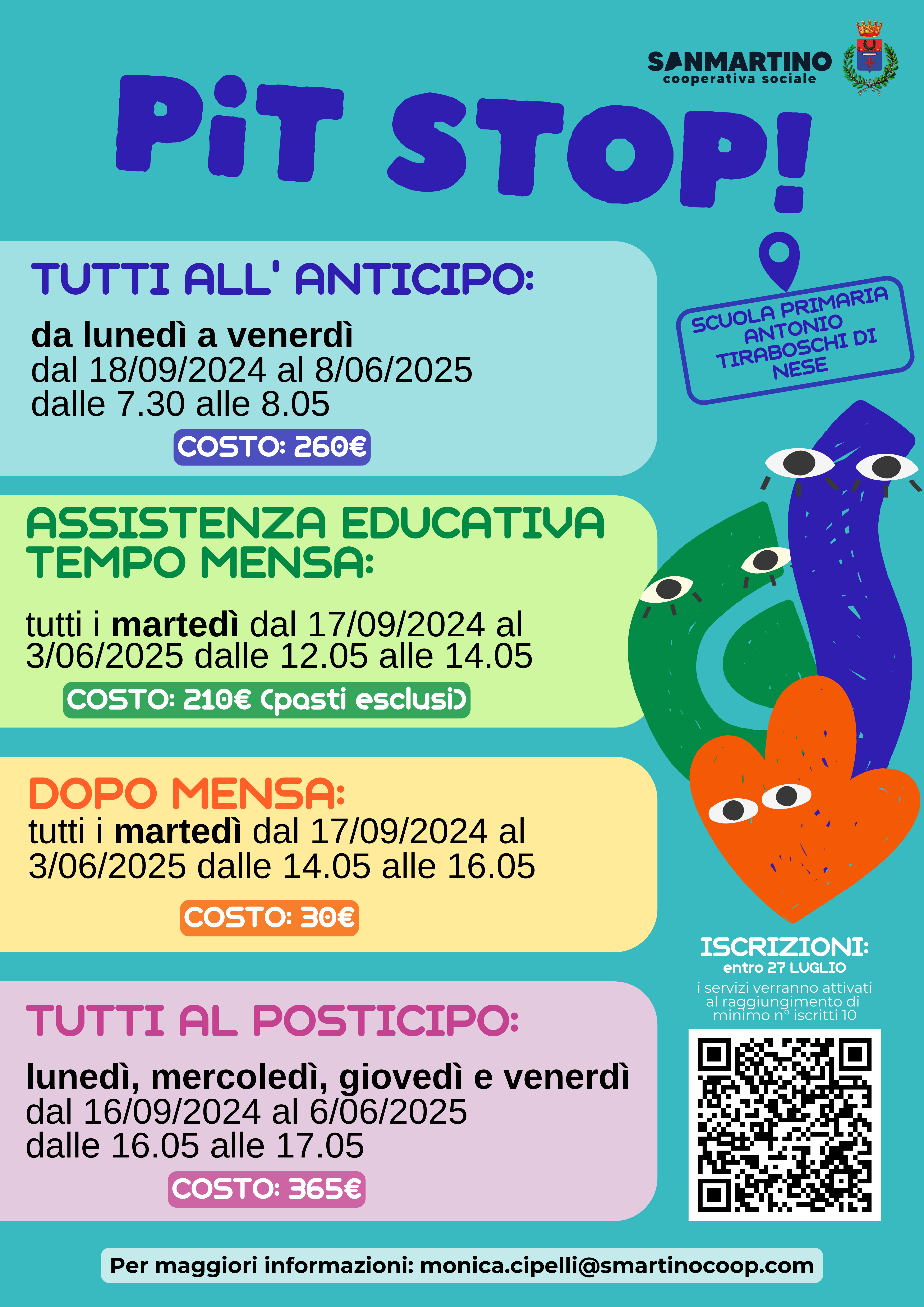 Per l' A.S. 2024/2025 si possono attivare i seguenti servizi effettuati dalla Cooperativa San Martino: