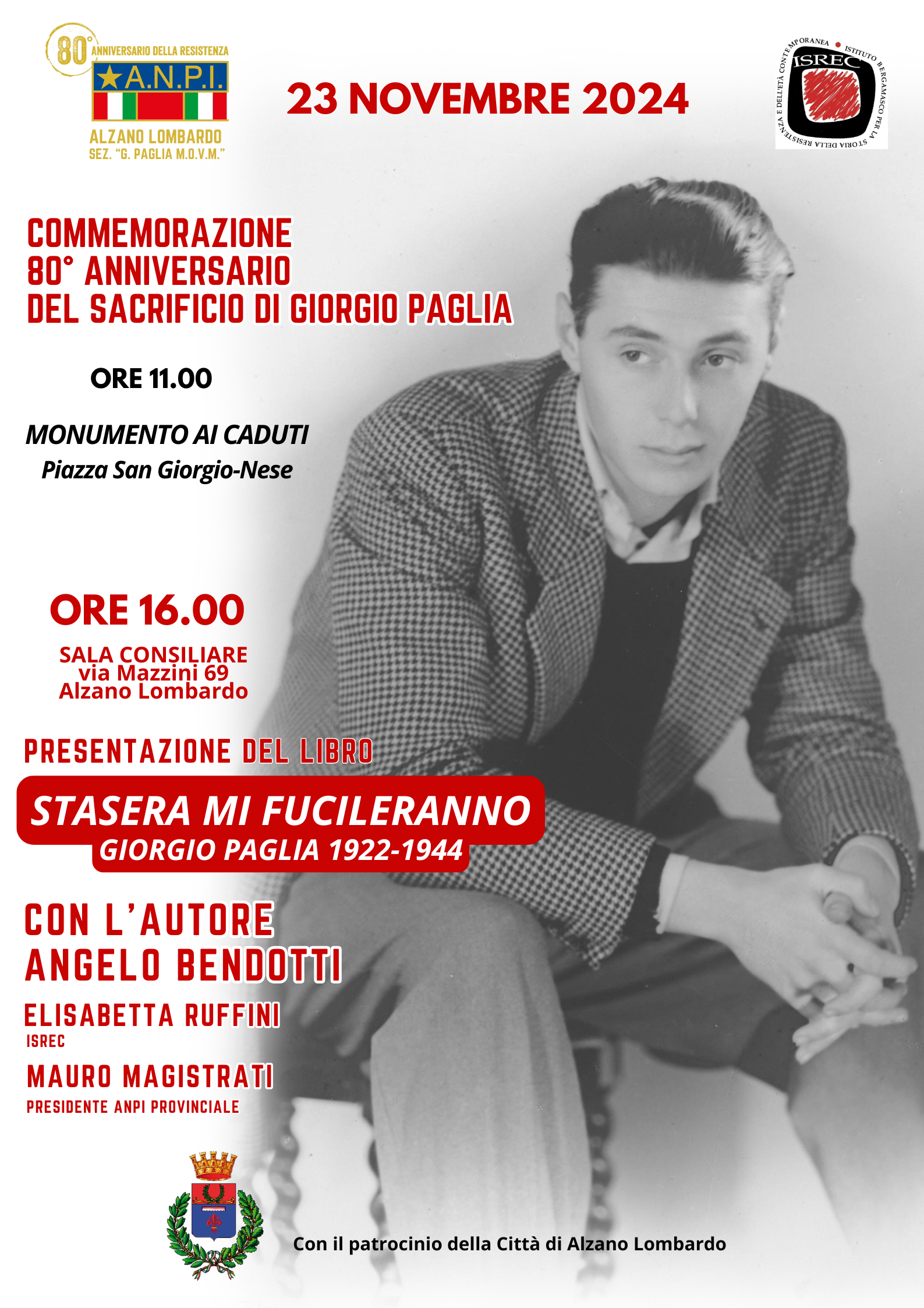 - per la presentazione del Libro "Stasera mi fucileranno" alle ore 16.00 presso la Sala Consiliare del Comune di Alzano Lombardo.