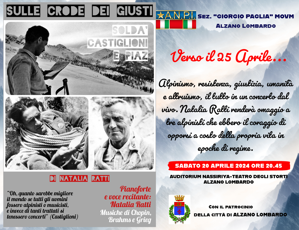 Si tratta di un concerto dal vivo per rendere omaggio a tre alpinisti che ebbero il coraggio di opporsi a costo della propria vita in epoche di regime.